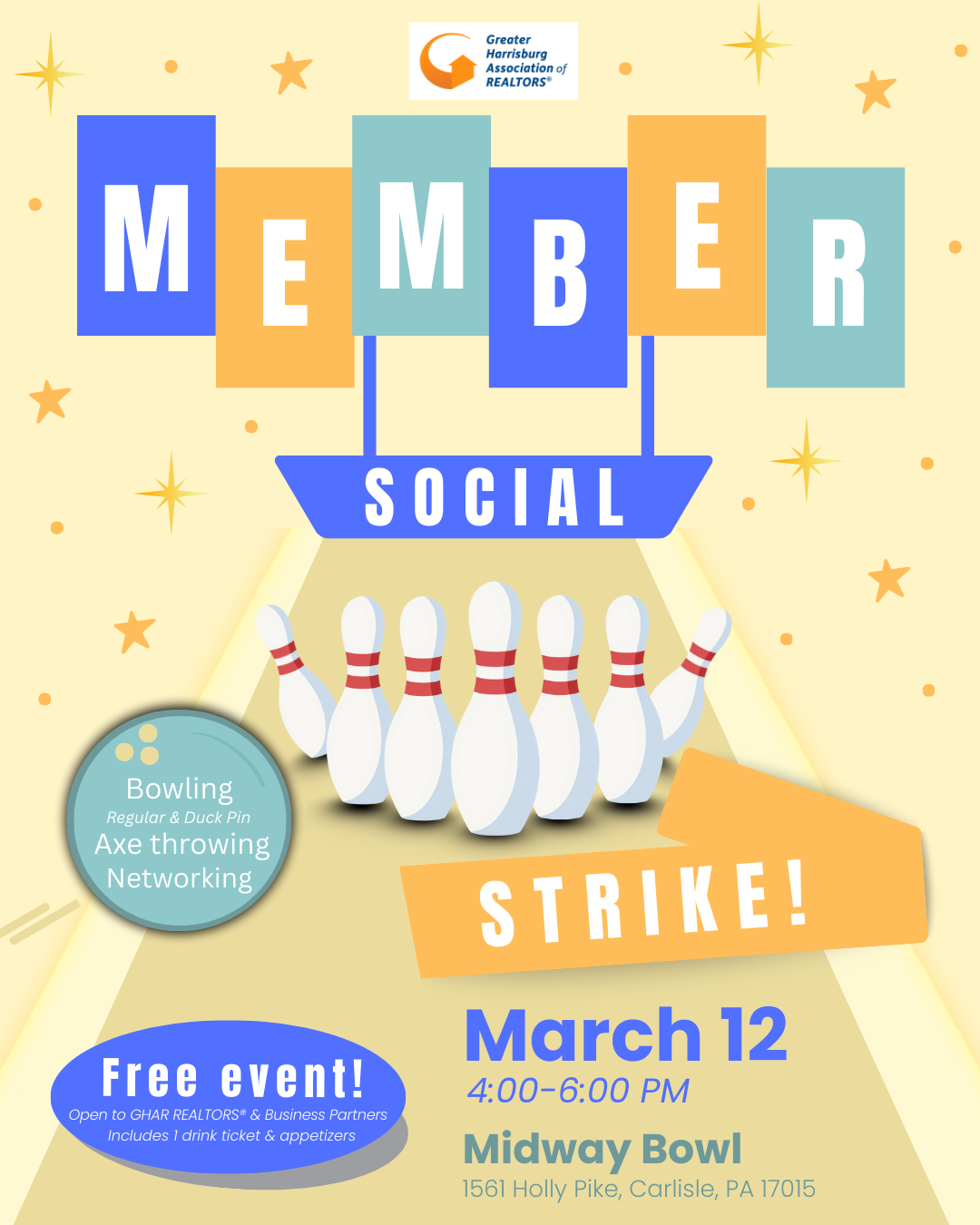 Join us for a fun, laid-back GHAR Membership Social at Midway Bowl in Carlisle! Connect with fellow REALTORS® and Business Partners while enjoying: This event is open to all GHAR Members and is the perfect opportunity to build relationships, unwind after the workday, and have a little fun while you’re at it. Date: Wednesday, March […] |